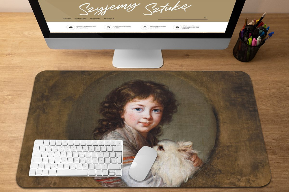 • Podkładka pod mysz w rozmiarze 60 x 40 cm. Praktyczna podkładka mata na biurko, która oprócz praktycznego zastosowania dodatkowo ozdobi Twoje biurko wyjątkowym dziełem sztuki.