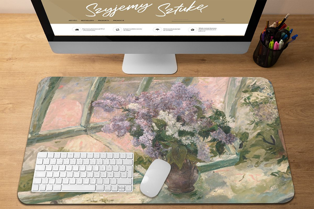 • Podkładka pod mysz w rozmiarze 60 x 40 cm. Praktyczna podkładka mata na biurko, która oprócz praktycznego zastosowania dodatkowo ozdobi Twoje biurko wyjątkowym dziełem sztuki.