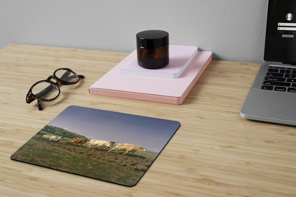 Podkładka pod mysz z nadrukiem na biurko. Rozmiar podkładki to 24 x 19 cm.