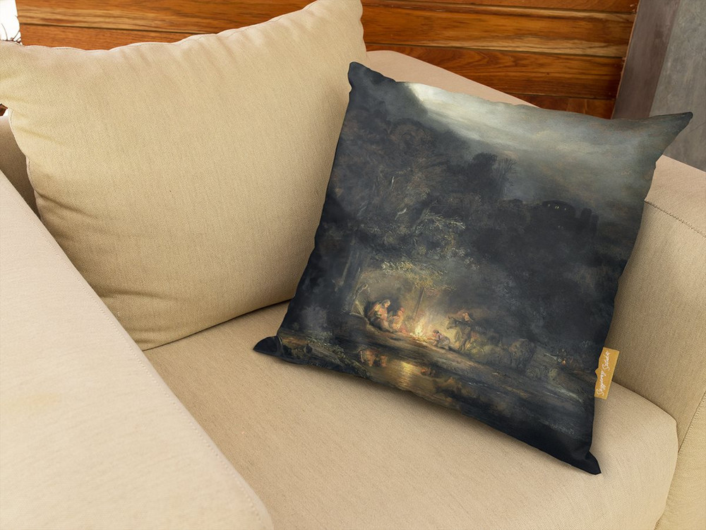Poduszka Krajobraz z odpoczynkiem podczas Ucieczki do Egiptu Rembrandt