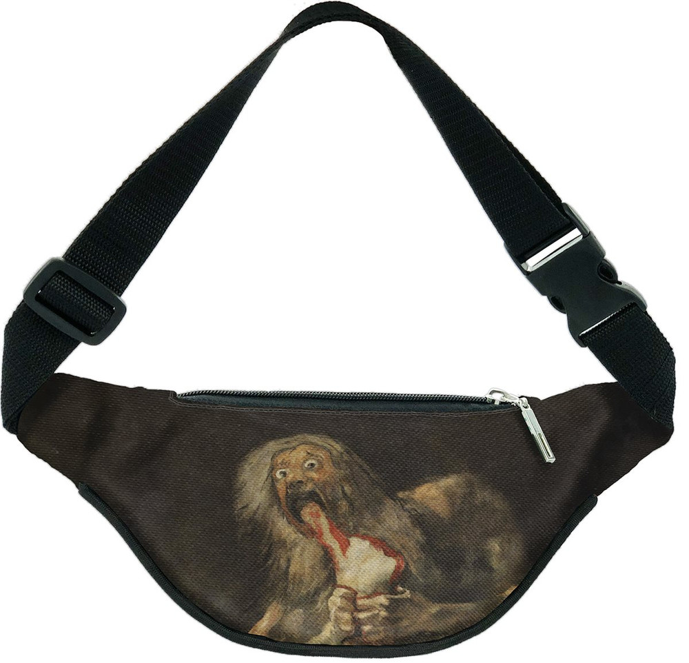 Torba biodrówka „Saturn pożerający własne dzieci” jest inspirowana dziełem autorstwa Francisco Goya, będącego symbolem piękna i historii. Jakość nadruku FullPrint oddaje piękno kolorów oraz detale dzieła, sprawiając, że jest to idealny wybór dla miłośników sztuki, którzy cenią elegancję i praktyczność każdego dnia.
