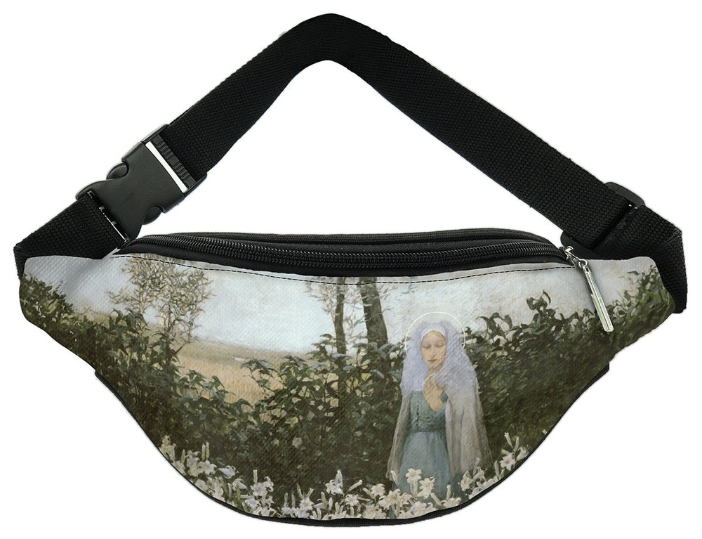 Zainspirowana mistrzostwem artystycznym, ta torba biodrówka przedstawia „Zwiastowanie” stworzone przez George Hitchcock. Dzięki nowoczesnemu nadrukowi FullPrint torba zachowuje intensywność kolorów, sprawdzając się zarówno jako stylowy dodatek, jak i praktyczny element codziennego ubioru dla każdego fana sztuki.