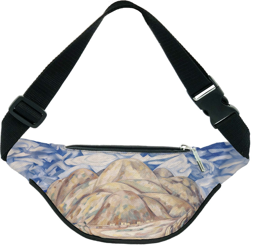 Ta wyjątkowa torba biodrówka zdobi się reprodukcją dzieła „Krajobraz nr 3, Kopalnie gotówki, Nowy Meksyk” autorstwa Marsden Hartley. Dzięki nowoczesnemu nadrukowi FullPrint torba zachowuje intensywność kolorów, sprawdzając się zarówno jako stylowy dodatek, jak i praktyczny element codziennego ubioru dla każdego fana sztuki.