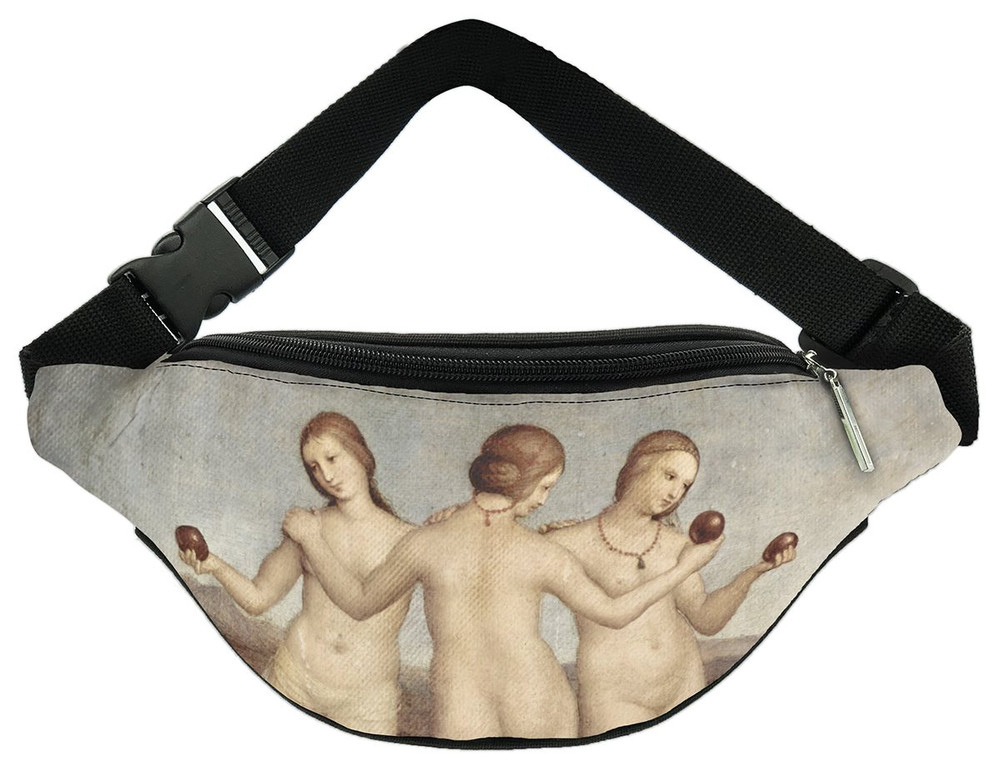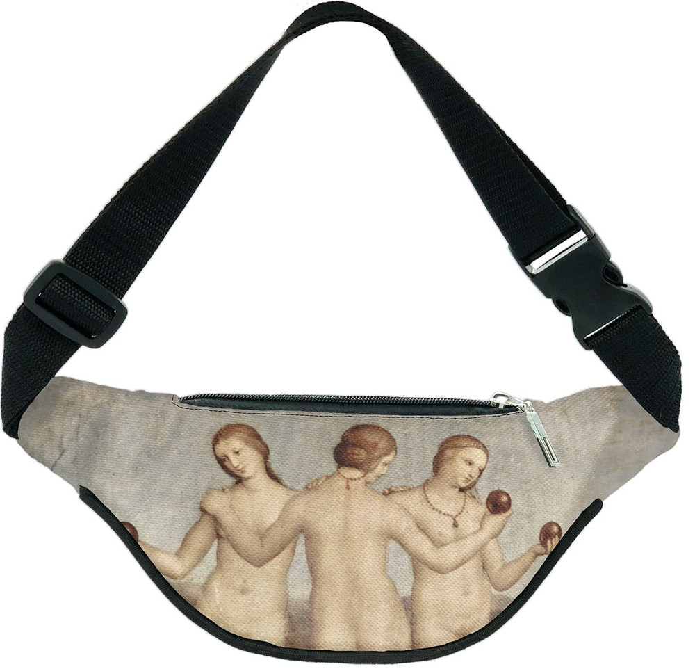 Ta wyjątkowa torba biodrówka zdobi się reprodukcją dzieła „Trzy gracje” autorstwa Rafael Santi. Dzięki nowoczesnemu nadrukowi FullPrint torba zachowuje intensywność kolorów, sprawdzając się zarówno jako stylowy dodatek, jak i praktyczny element codziennego ubioru dla każdego fana sztuki.