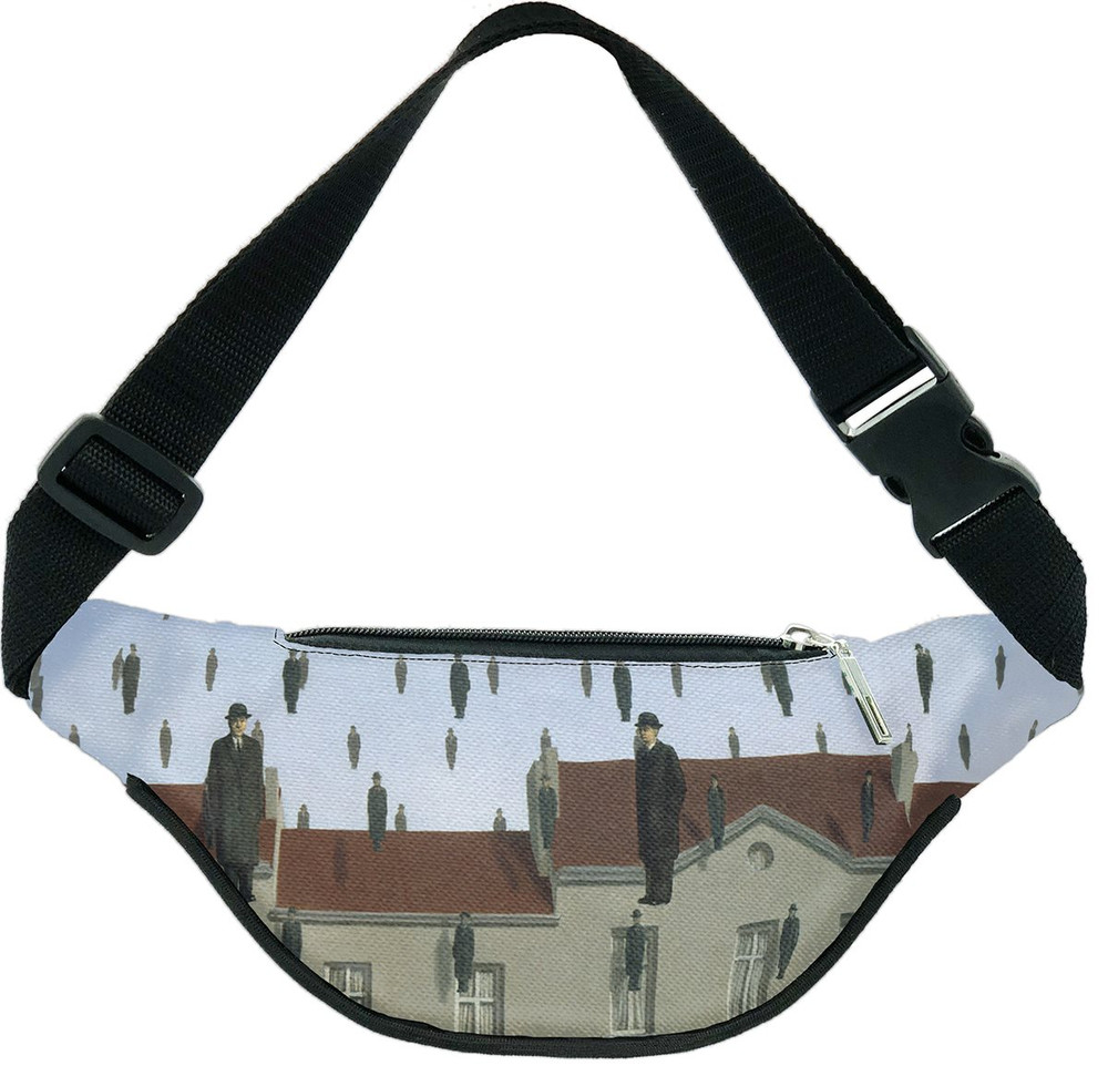 Zainspirowana mistrzostwem artystycznym, ta torba biodrówka przedstawia „Spadanie” stworzone przez René Magritte. Dzięki nowoczesnemu nadrukowi FullPrint torba zachowuje intensywność kolorów, sprawdzając się zarówno jako stylowy dodatek, jak i praktyczny element codziennego ubioru dla każdego fana sztuki.