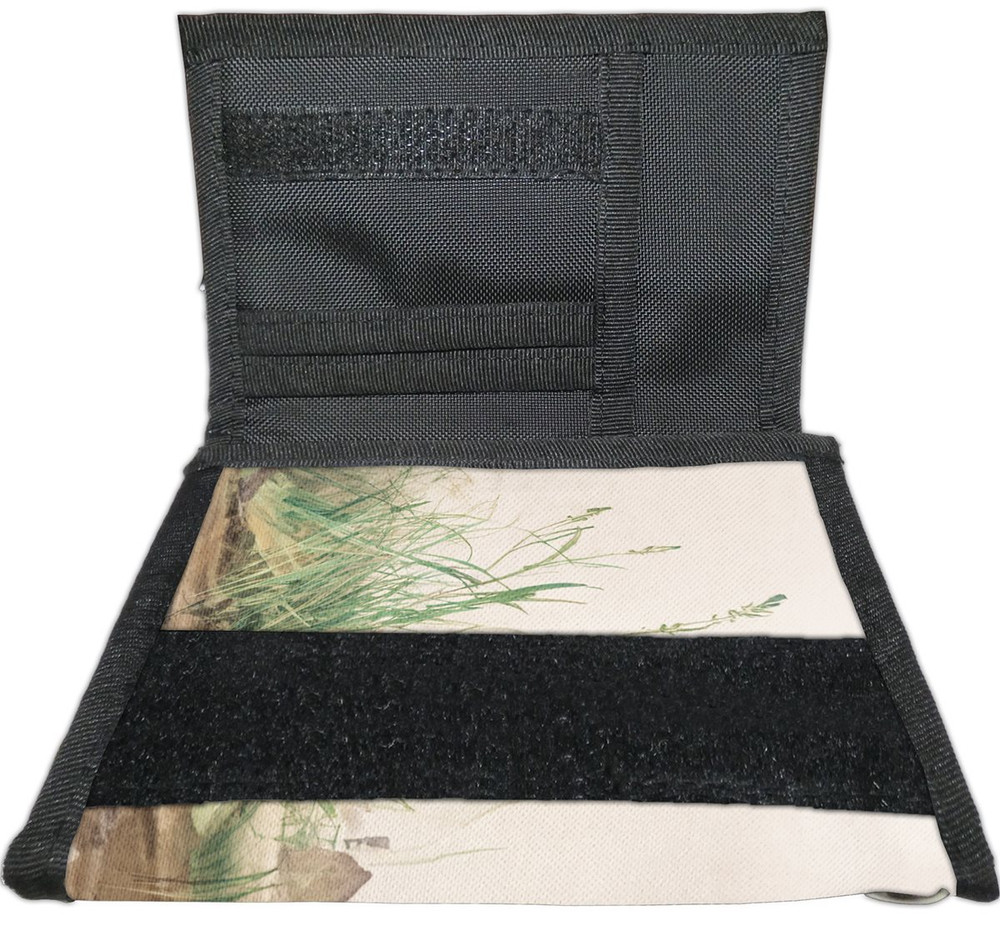 - Portfel zapinany jest na rzep, oraz posiada otwór na łańcuch, lub breloczek np. z kluczami.