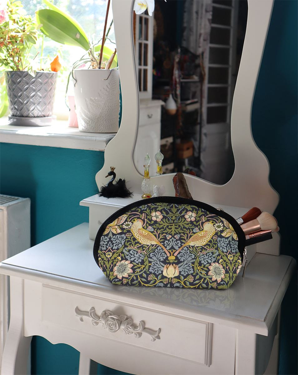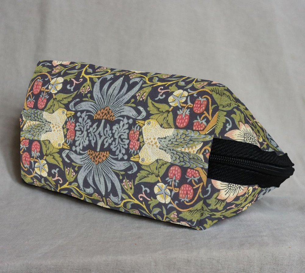 Wzór „Kradzież truskawek” (Strawberry Thief) przedstawia ptaki skubiące truskawki. Morris stworzył go jako deseń tkaniny do wystroju wnętrz, łącząc miłość do natury z wysokim kunsztem rzemieślniczym.