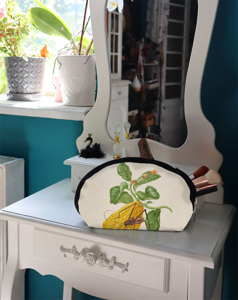 Kosmetyczka Cytryna z gąsienicą małpy i chrząszczem harlekin Maria Sibylla Merian