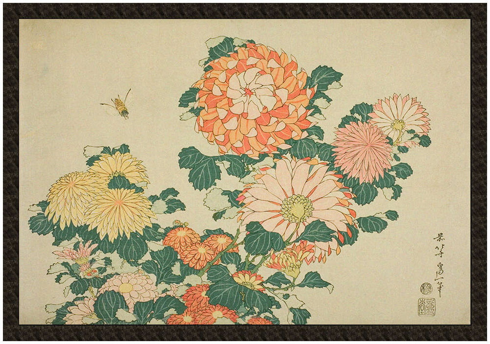 Naszywka Chryzantemy i pszczoła Katsushika Hokusai