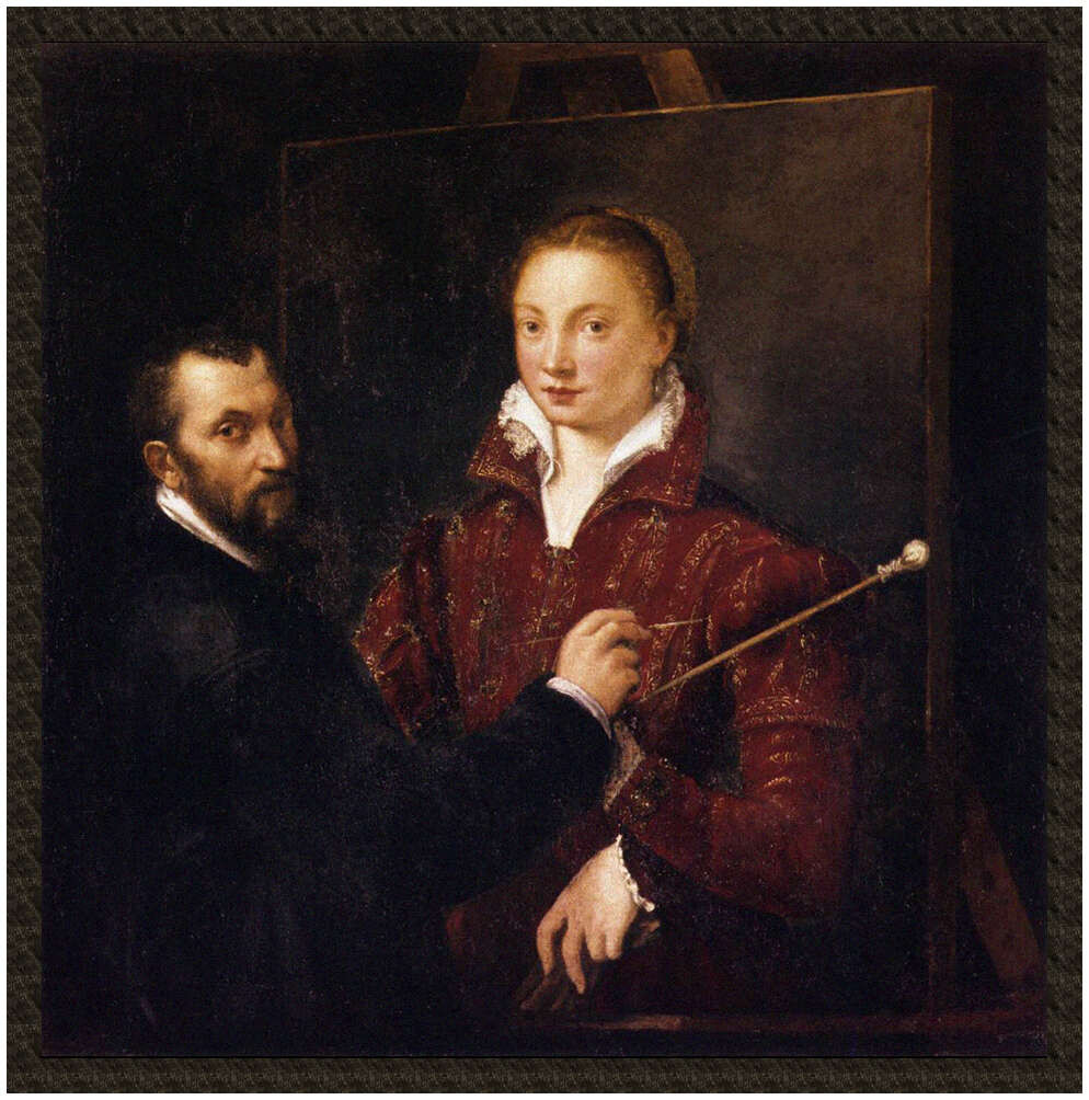 Naszywka Bernardino Campi malujący Sofonisbę Anguissolę Sofonisba Anguissola