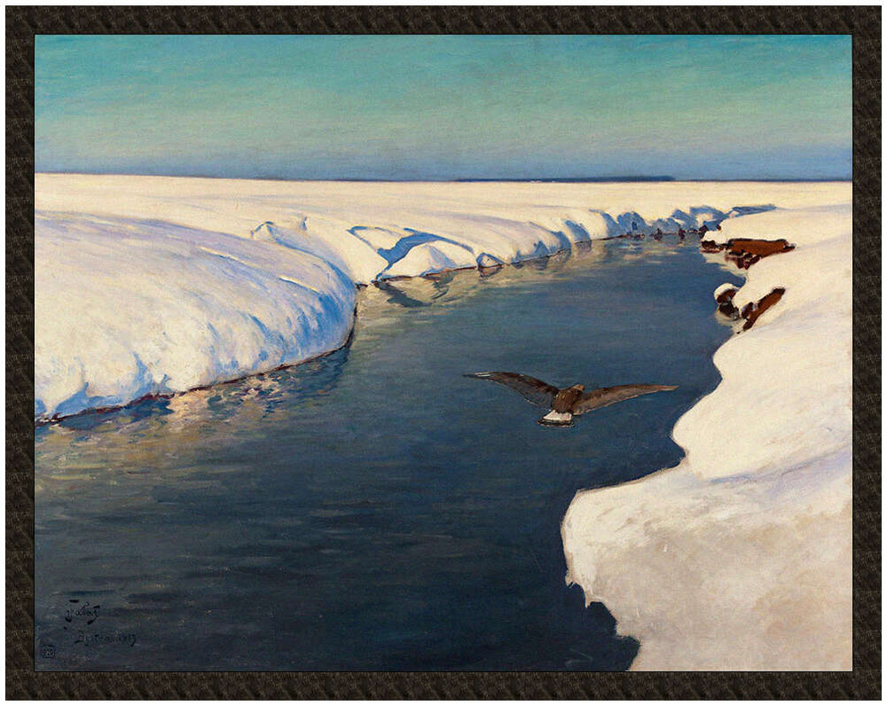 Naszywka Pejzaż zimowy z rzeką i ptakiem Julian Fałat