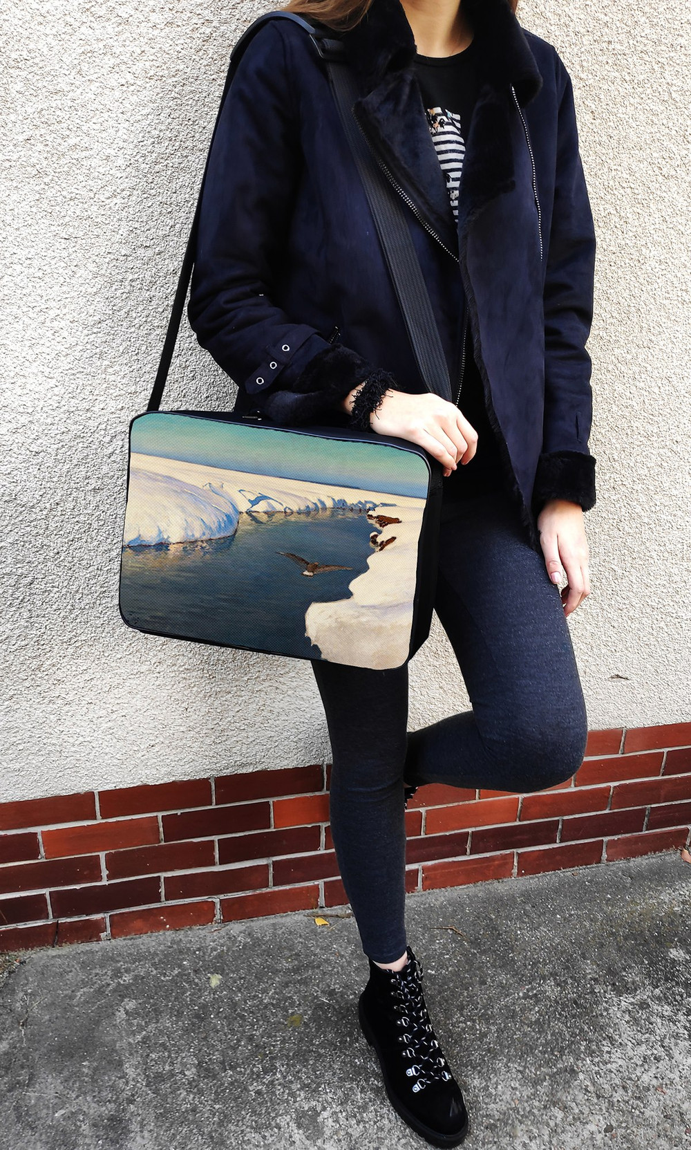 Torba na ramię Pejzaż zimowy z rzeką i ptakiem Julian Fałat