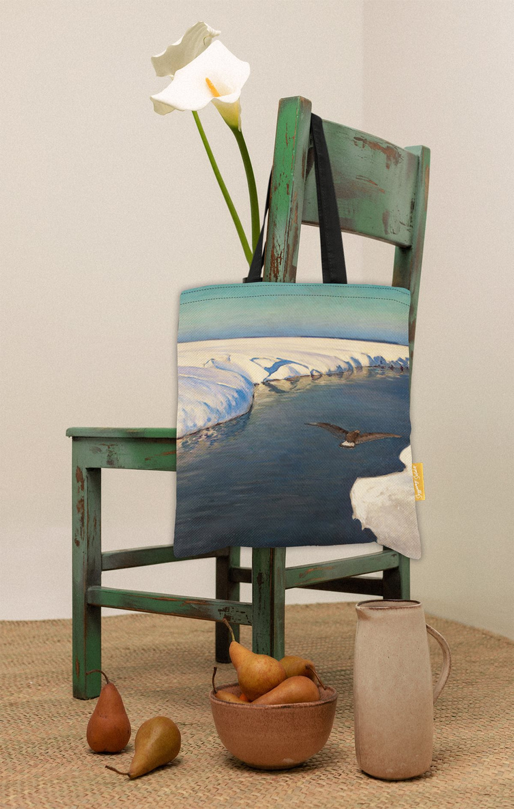 Torba na ramię Pejzaż zimowy z rzeką i ptakiem Julian Fałat