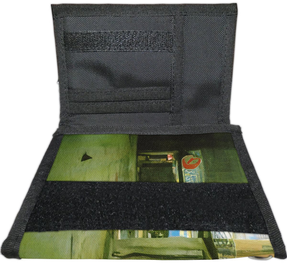 - Portfel zapinany jest na rzep, oraz posiada otwór na łańcuch, lub breloczek np. z kluczami.