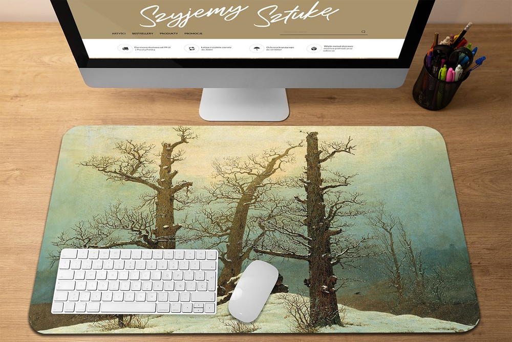 - Podkładka pod mysz w rozmiarze 60 x 40 cm. Praktyczna podkładka mata na biurko, która oprócz praktycznego zastosowania dodatkowo ozdobi Twoje biurko wyjątkowym dziełem sztuki.