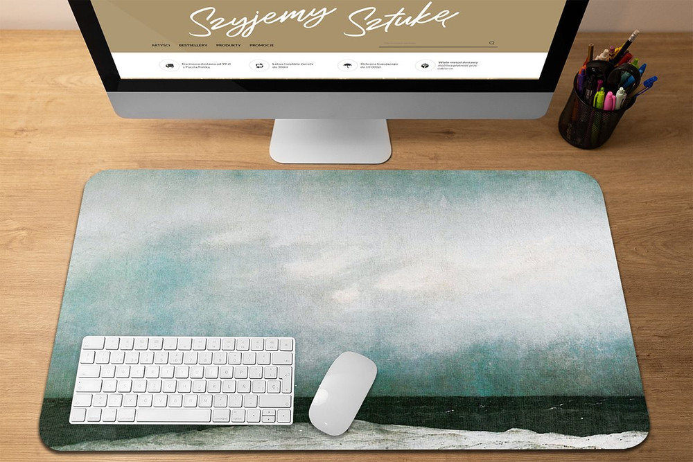 - Podkładka pod mysz w rozmiarze 60 x 40 cm. Praktyczna podkładka mata na biurko, która oprócz praktycznego zastosowania dodatkowo ozdobi Twoje biurko wyjątkowym dziełem sztuki.