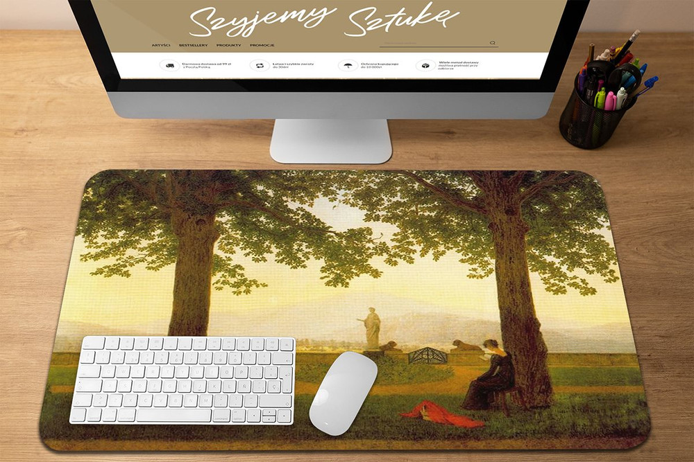 • Podkładka pod mysz w rozmiarze 60 x 40 cm. Praktyczna podkładka mata na biurko, która oprócz praktycznego zastosowania dodatkowo ozdobi Twoje biurko wyjątkowym dziełem sztuki.