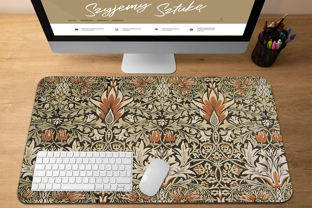 - Podkładka pod mysz w rozmiarze 60 x 40 cm. Praktyczna podkładka mata na biurko, która oprócz praktycznego zastosowania dodatkowo ozdobi Twoje biurko wyjątkowym dziełem sztuki.