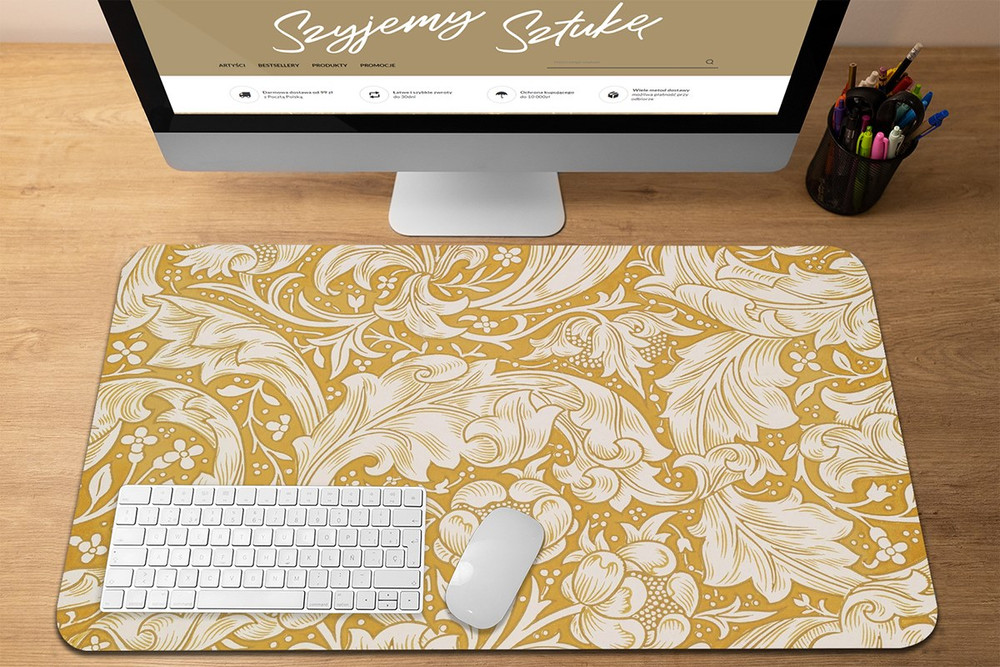 • Podkładka pod mysz w rozmiarze 60 x 40 cm. Praktyczna podkładka mata na biurko, która oprócz praktycznego zastosowania dodatkowo ozdobi Twoje biurko wyjątkowym dziełem sztuki.
