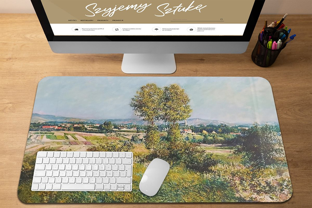 - Podkładka pod mysz w rozmiarze 60 x 40 cm. Praktyczna podkładka mata na biurko, która oprócz praktycznego zastosowania dodatkowo ozdobi Twoje biurko wyjątkowym dziełem sztuki.