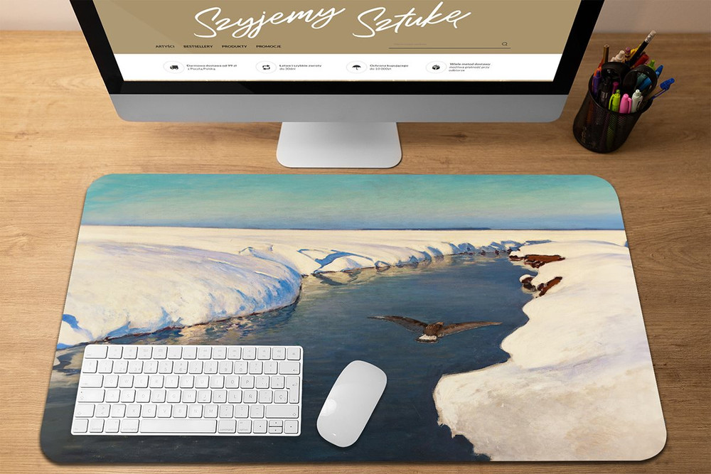 Podkładka pod mysz z nadrukiem na biurko. Rozmiar podkładki to 60 x 40 cm.