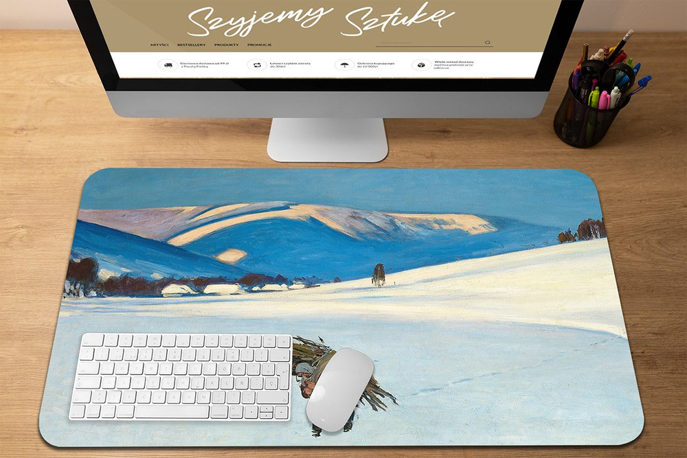 Podkładka pod mysz z nadrukiem na biurko. Rozmiar podkładki to 60 x 40 cm.