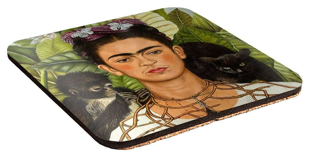 Podkładka pod kubek Autoportret z cierniowym naszyjnikiem i kolibrem Frida Kahlo