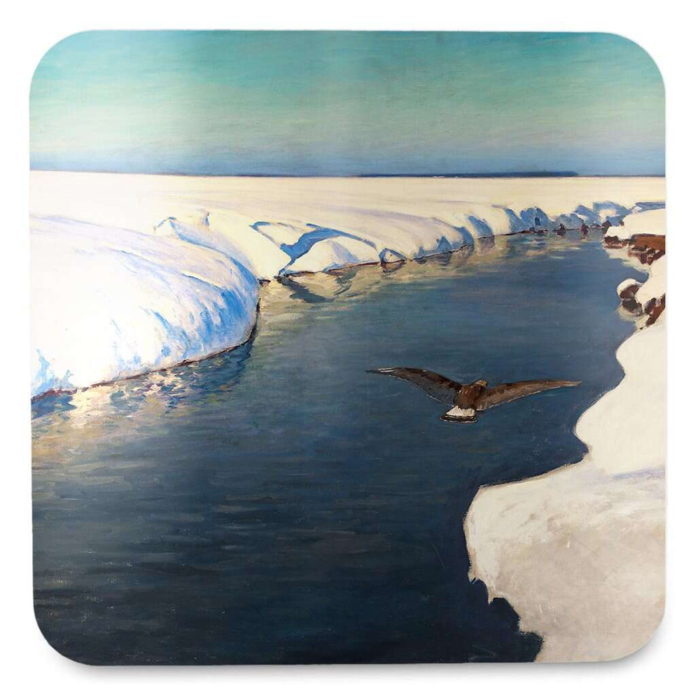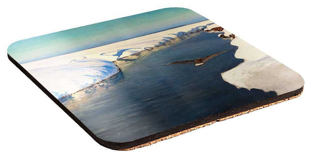 Podkładka pod kubek Pejzaż zimowy z rzeką i ptakiem Julian Fałat