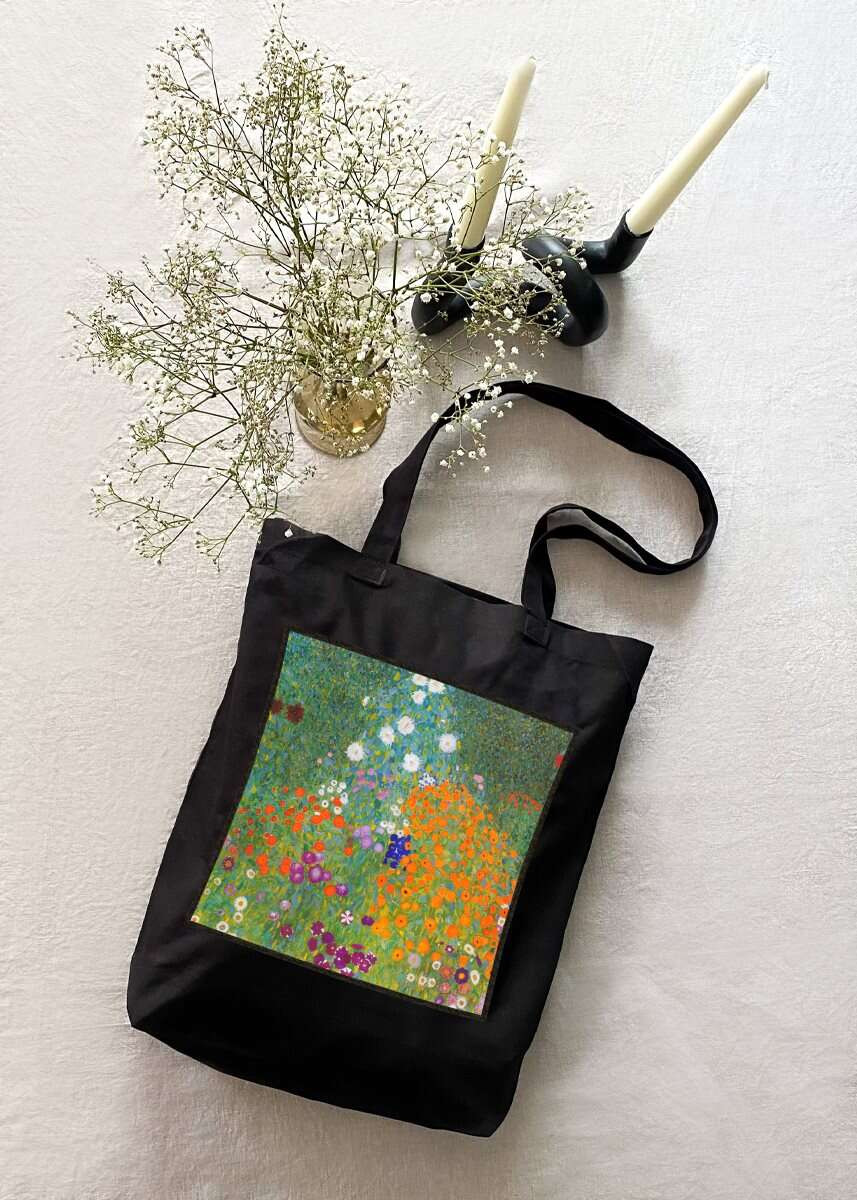• Bawełniana torba z dużą naszywką z motywem sztuki malarskiej.