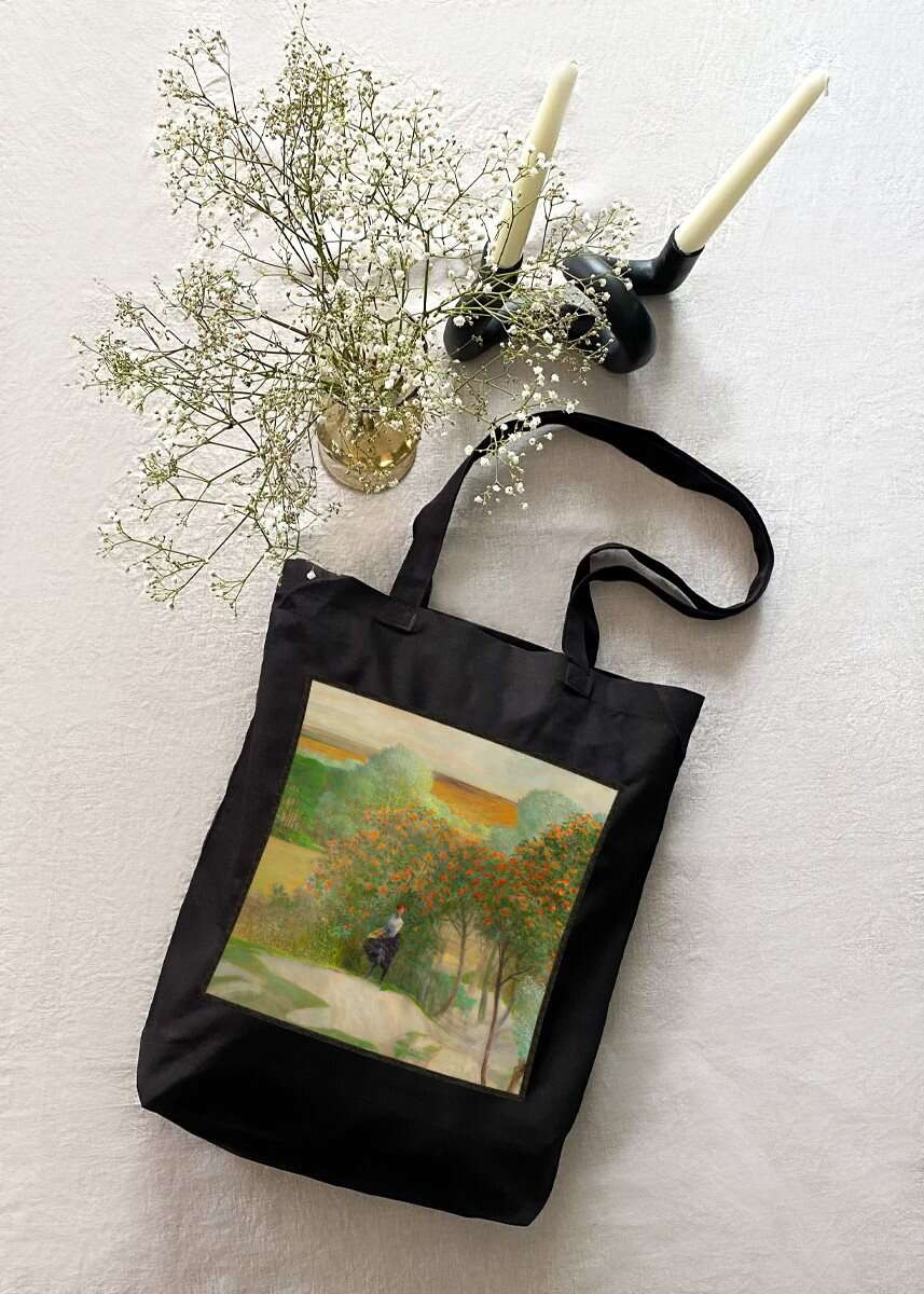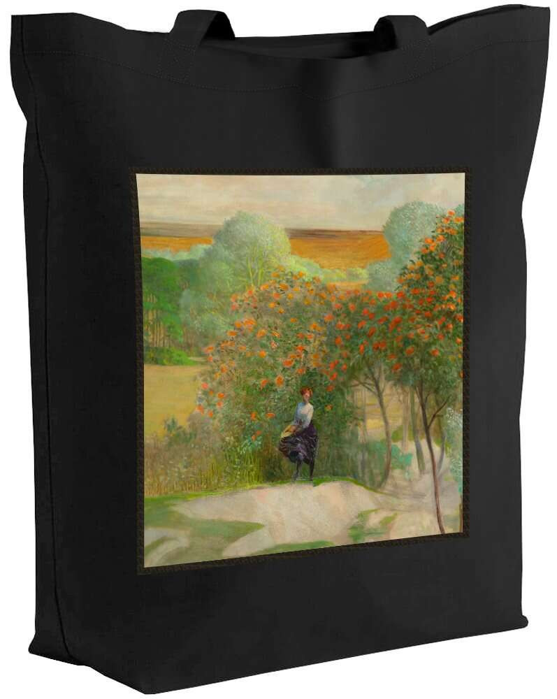 Torba z naszywką Pejzaż z jarzębiną, część prawa tryptyku _Idź nad strumienie_ Jacek Malczewski