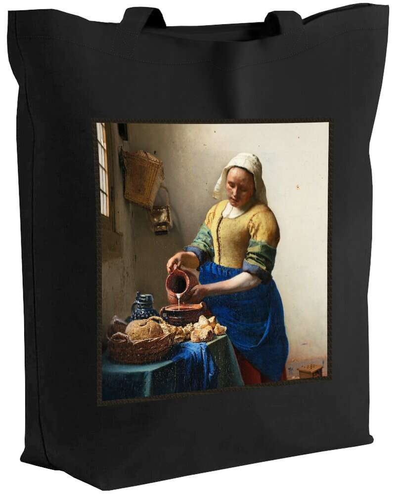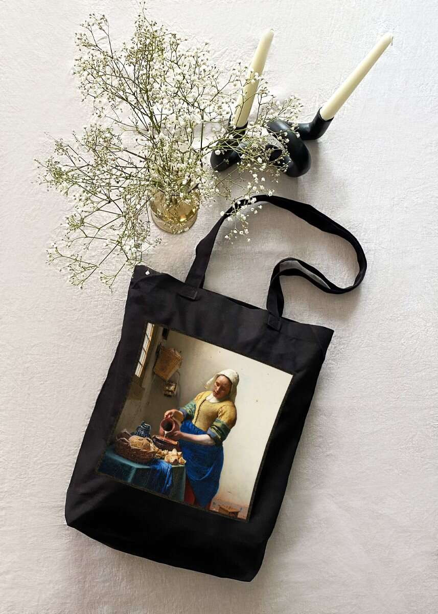 - Bawełniana torba z dużą naszywką z motywem sztuki malarskiej.