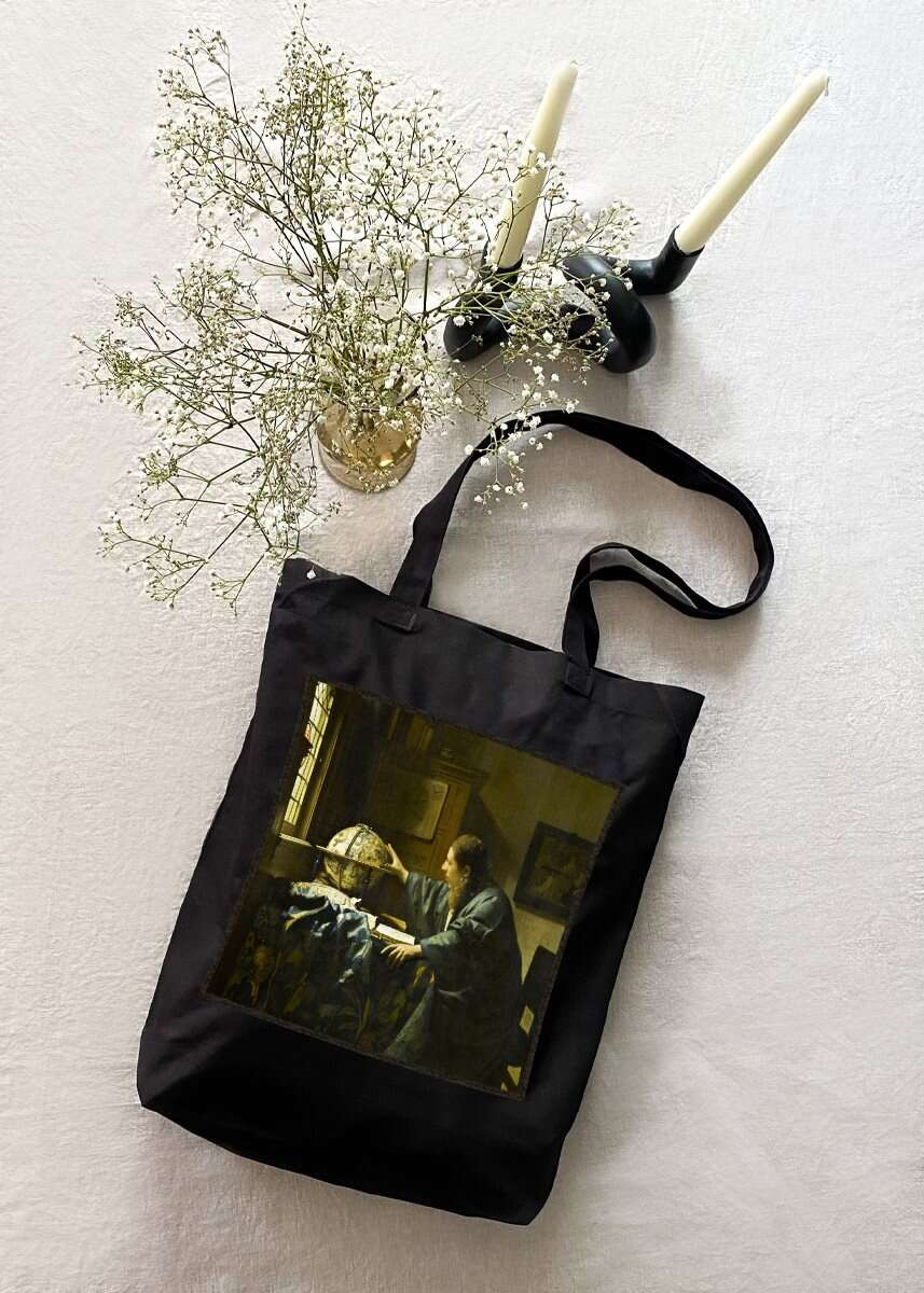 • Bawełniana torba z dużą naszywką z motywem sztuki malarskiej.