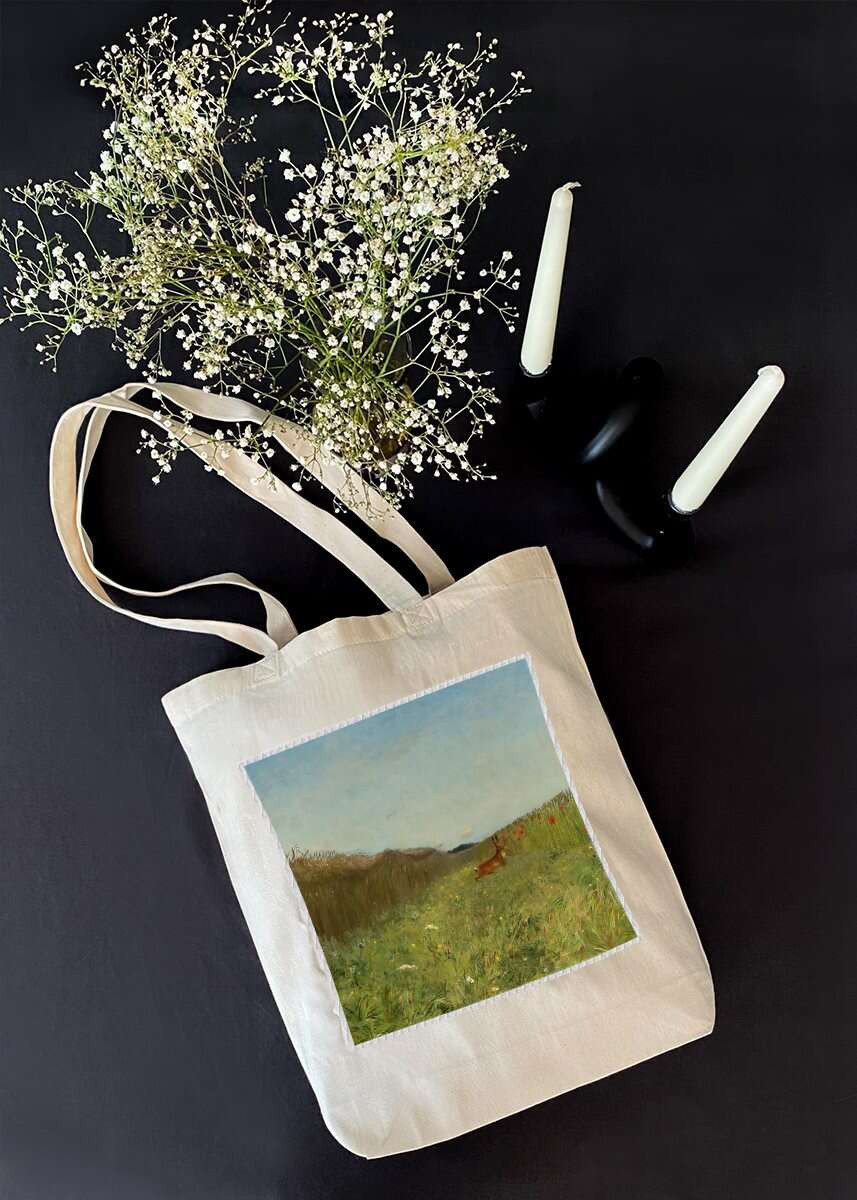 Torba z naszywką Zając wśród zboża Józef Chełmoński