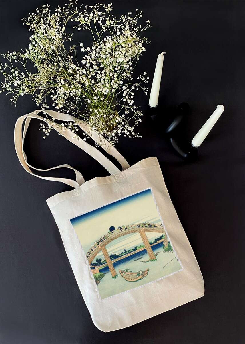 Torba z naszywką Pod mostem Mannen w Fukagawa Katsushika Hokusai