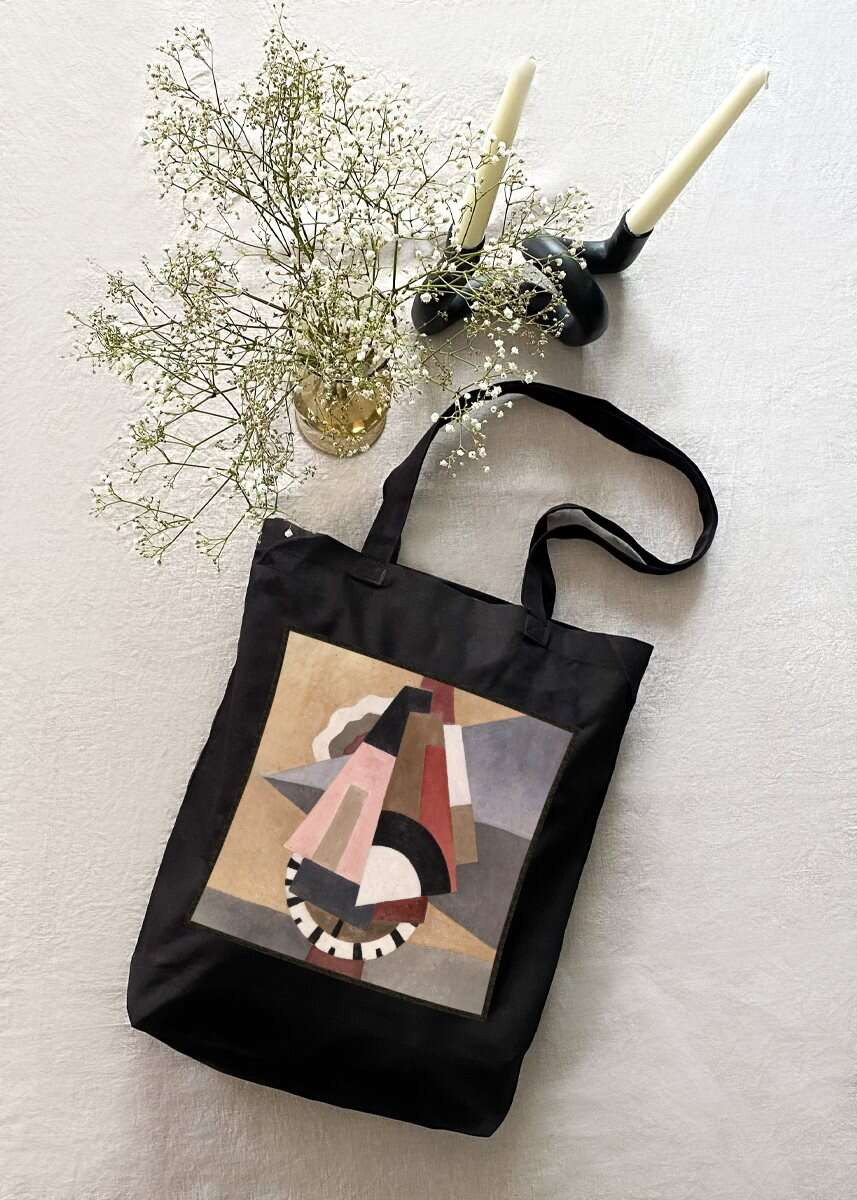 • Bawełniana torba z dużą naszywką z motywem sztuki malarskiej.