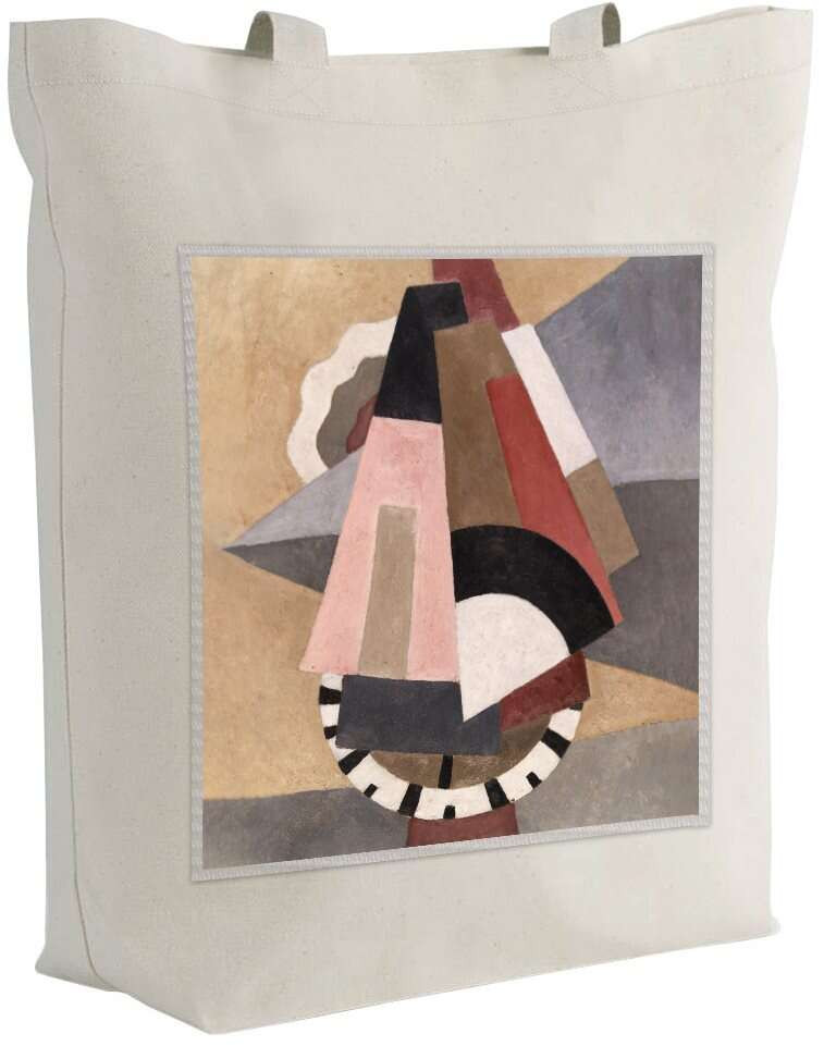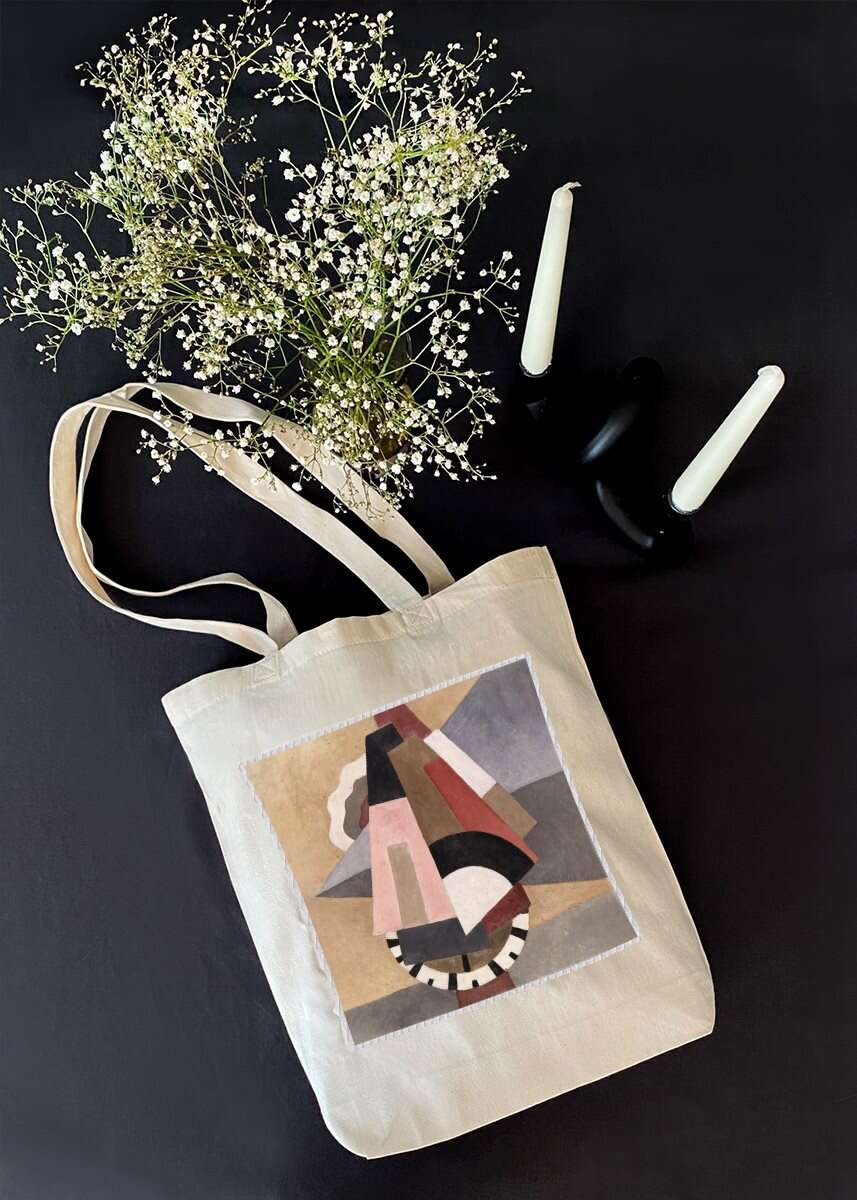 - Bawełniana torba z dużą naszywką z motywem sztuki malarskiej.