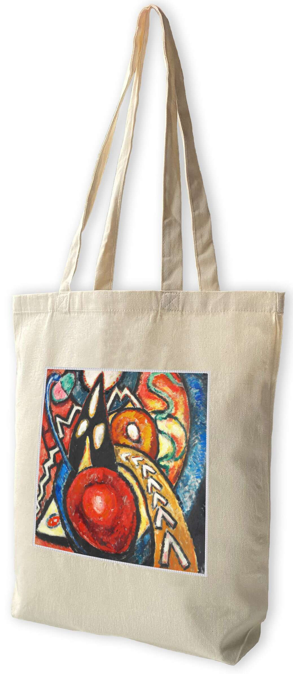 • Bawełniana torba z dużą naszywką z motywem sztuki malarskiej.