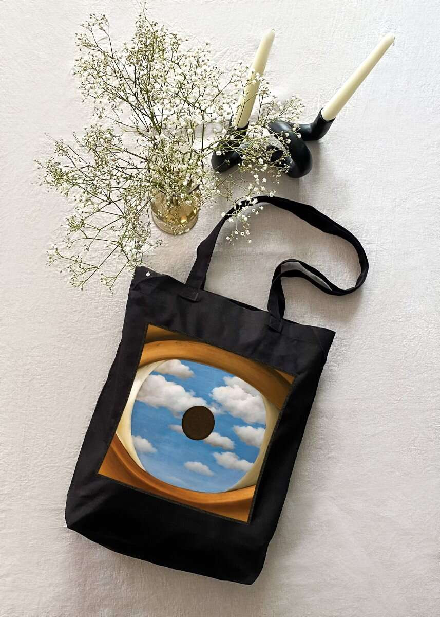 • Bawełniana torba z dużą naszywką z motywem sztuki malarskiej.