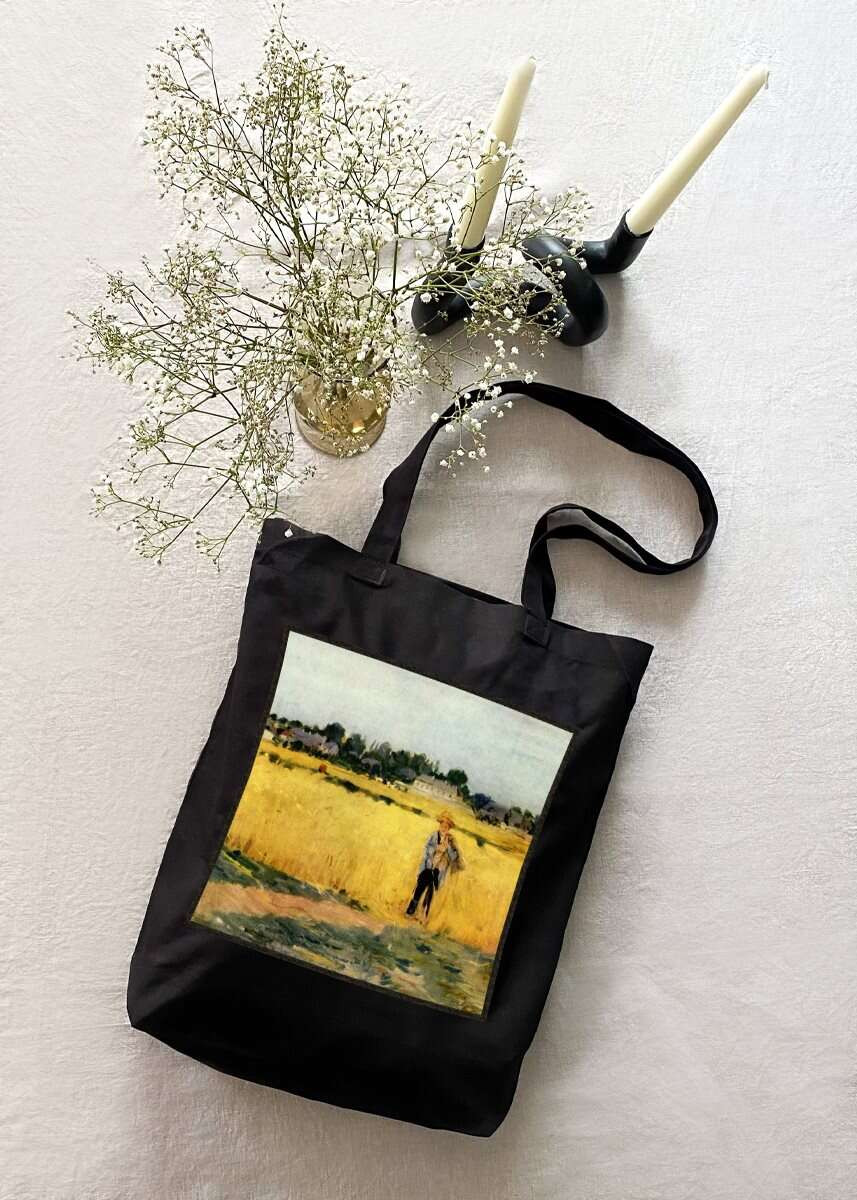 • Bawełniana torba z dużą naszywką z motywem sztuki malarskiej.