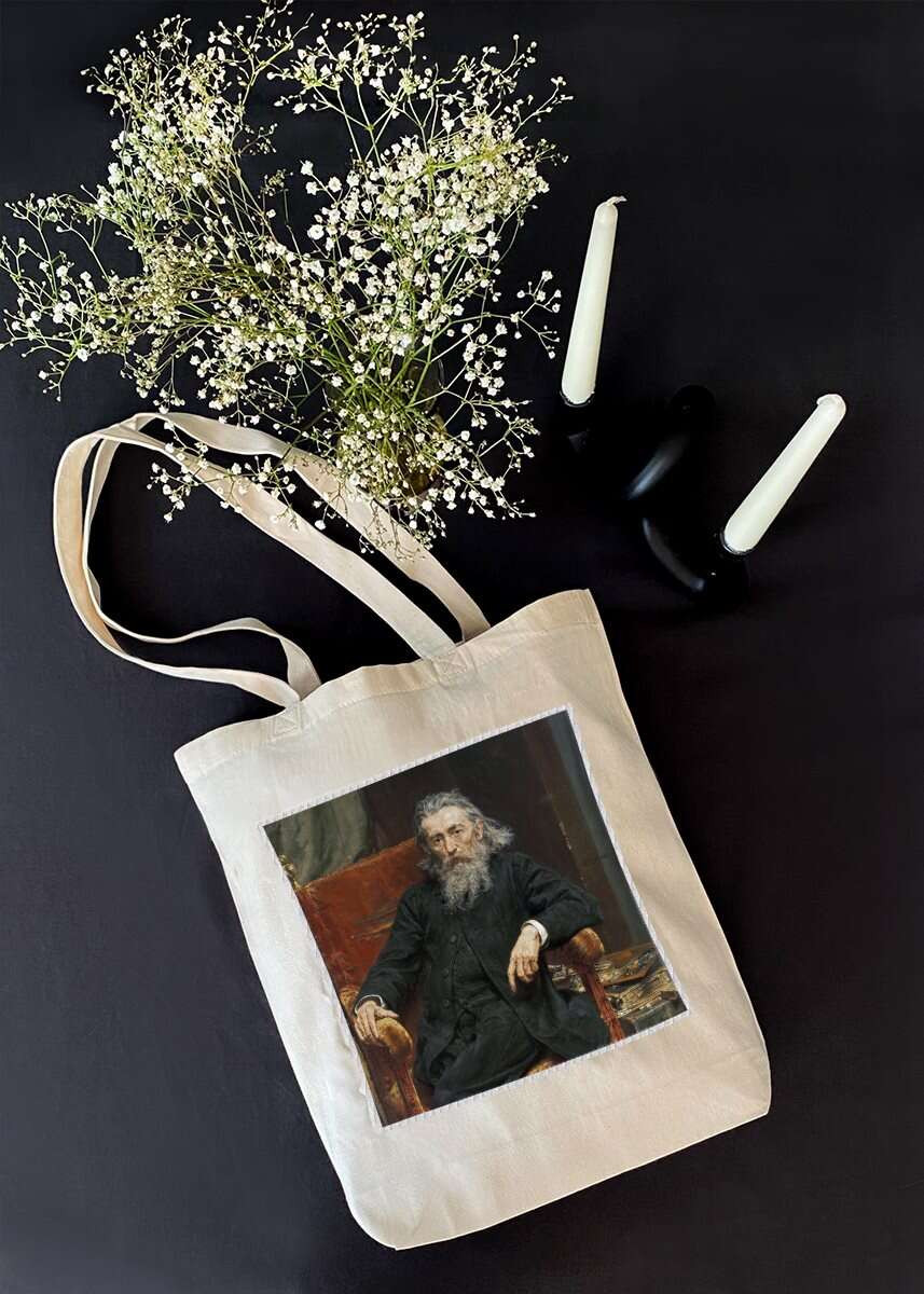 • Bawełniana torba z dużą naszywką z motywem sztuki malarskiej.