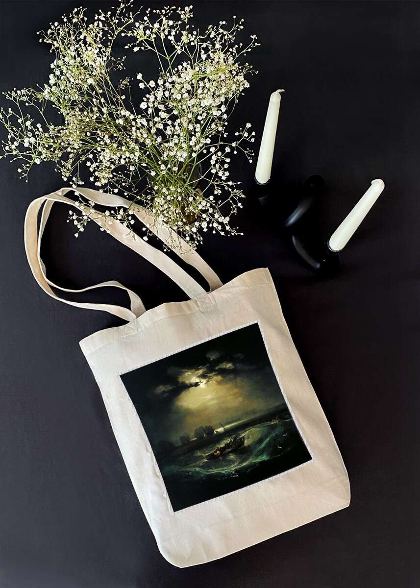 • Bawełniana torba z dużą naszywką z motywem sztuki malarskiej.