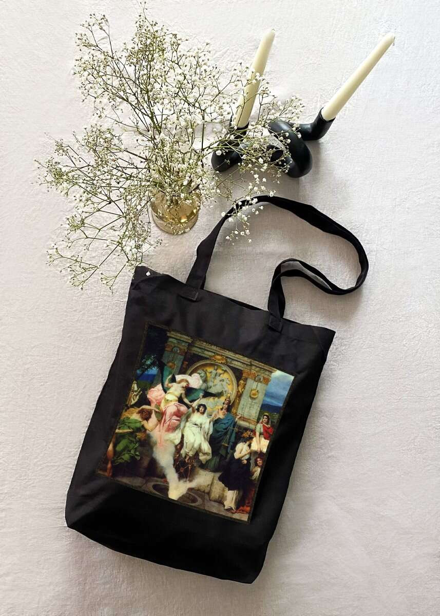 • Bawełniana torba z dużą naszywką z motywem sztuki malarskiej.