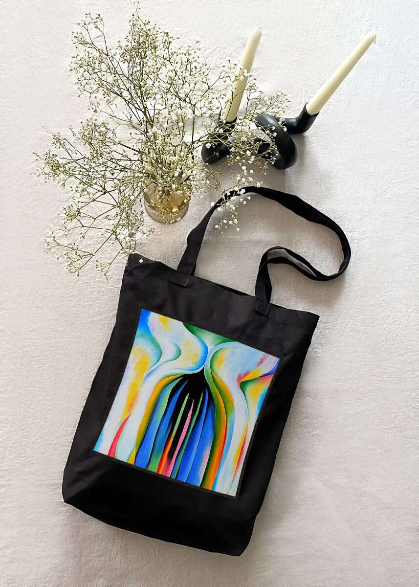 Torba z naszywką Szare linie z czarnym, niebieskim i żółtym Georgia O’Keeffe