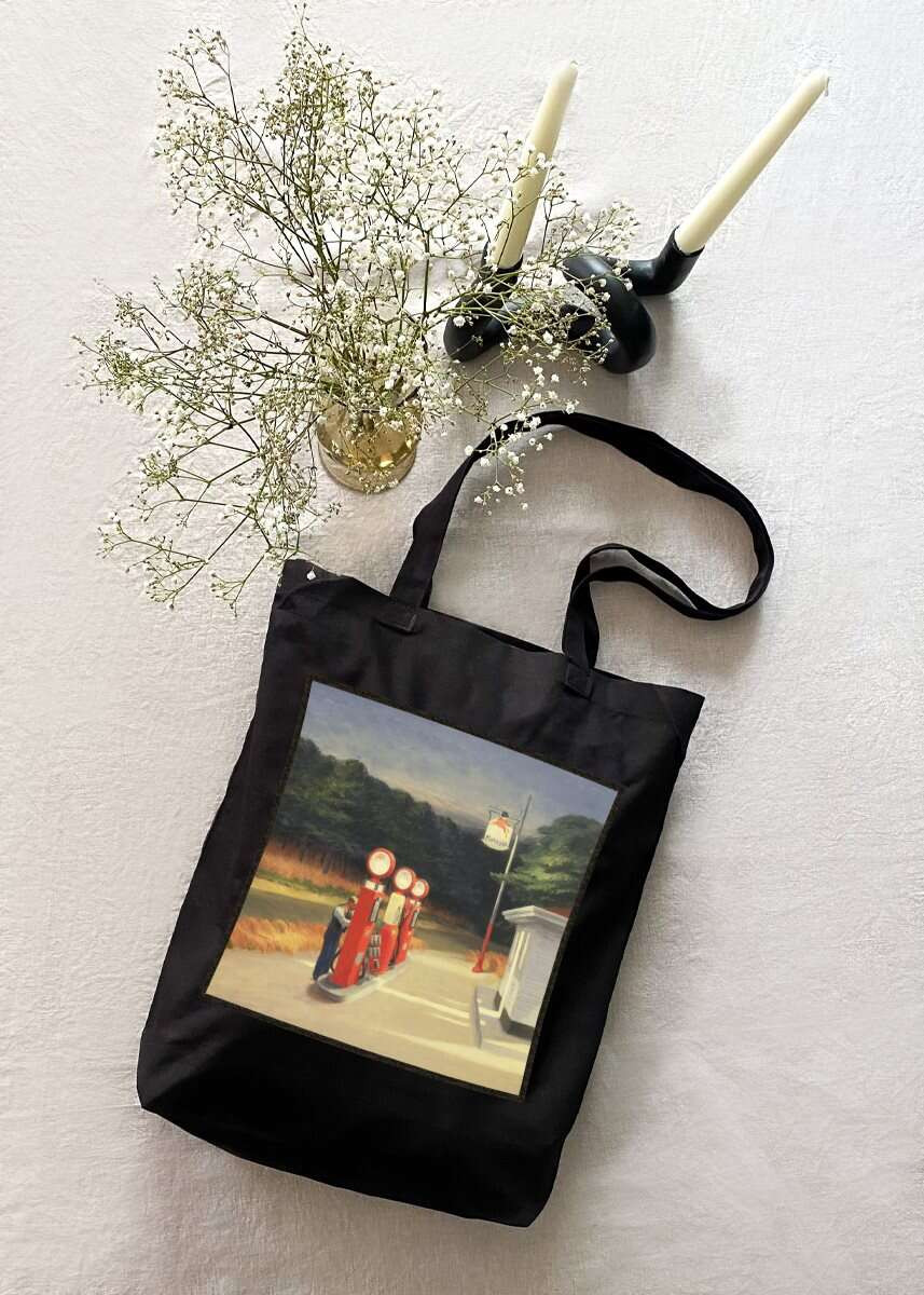 • Bawełniana torba z dużą naszywką z motywem sztuki malarskiej.