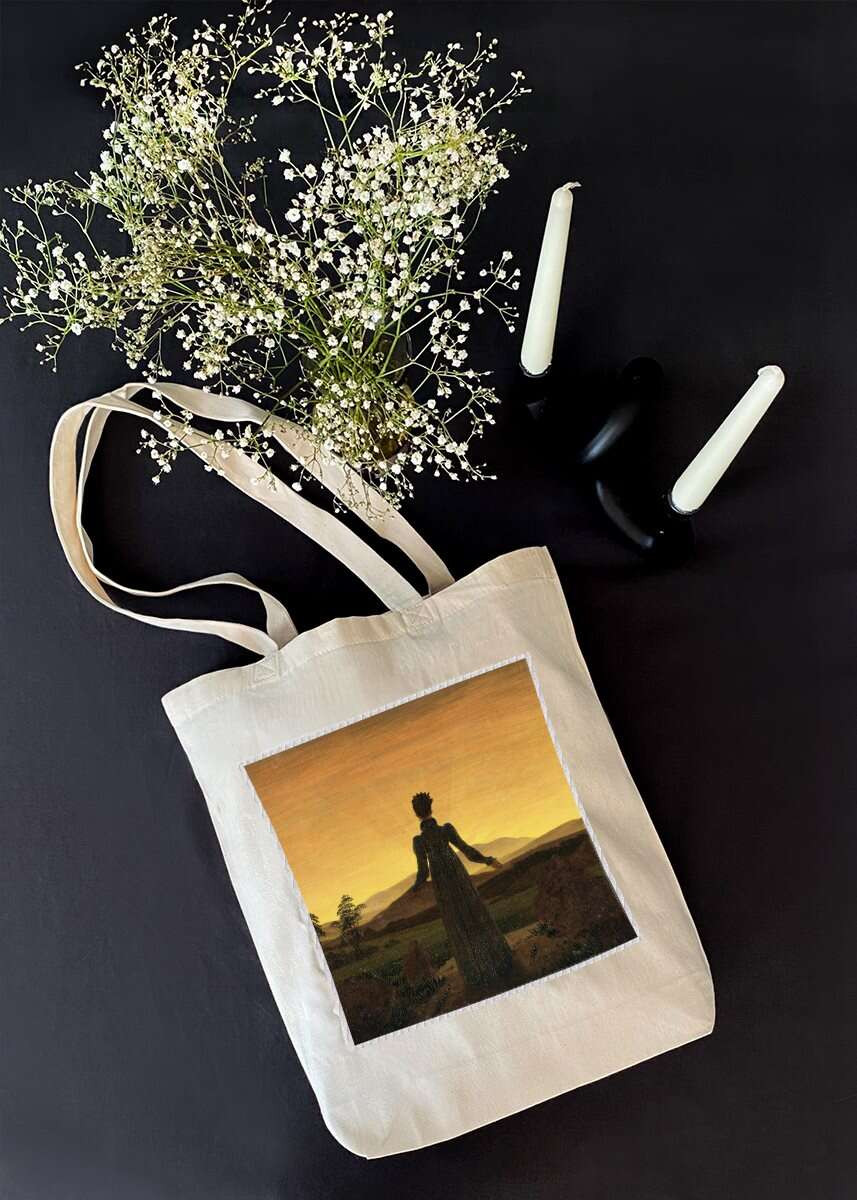 Torba z naszywką Kobieta na tle zachodzącego słońca Caspar David Friedrich