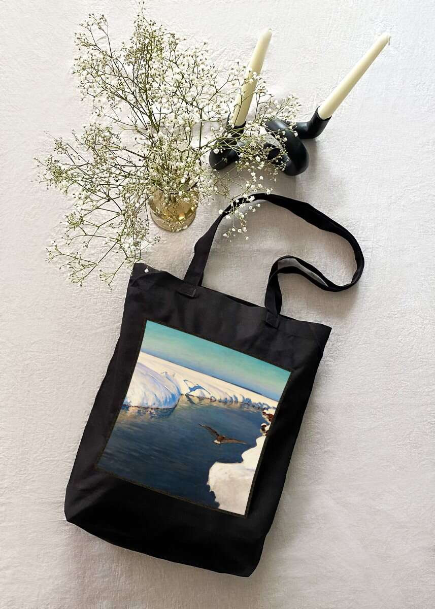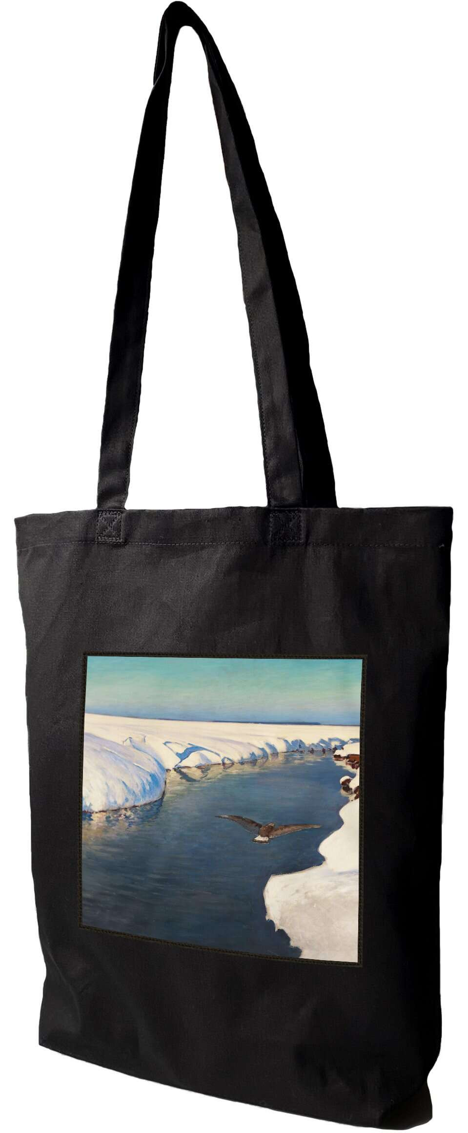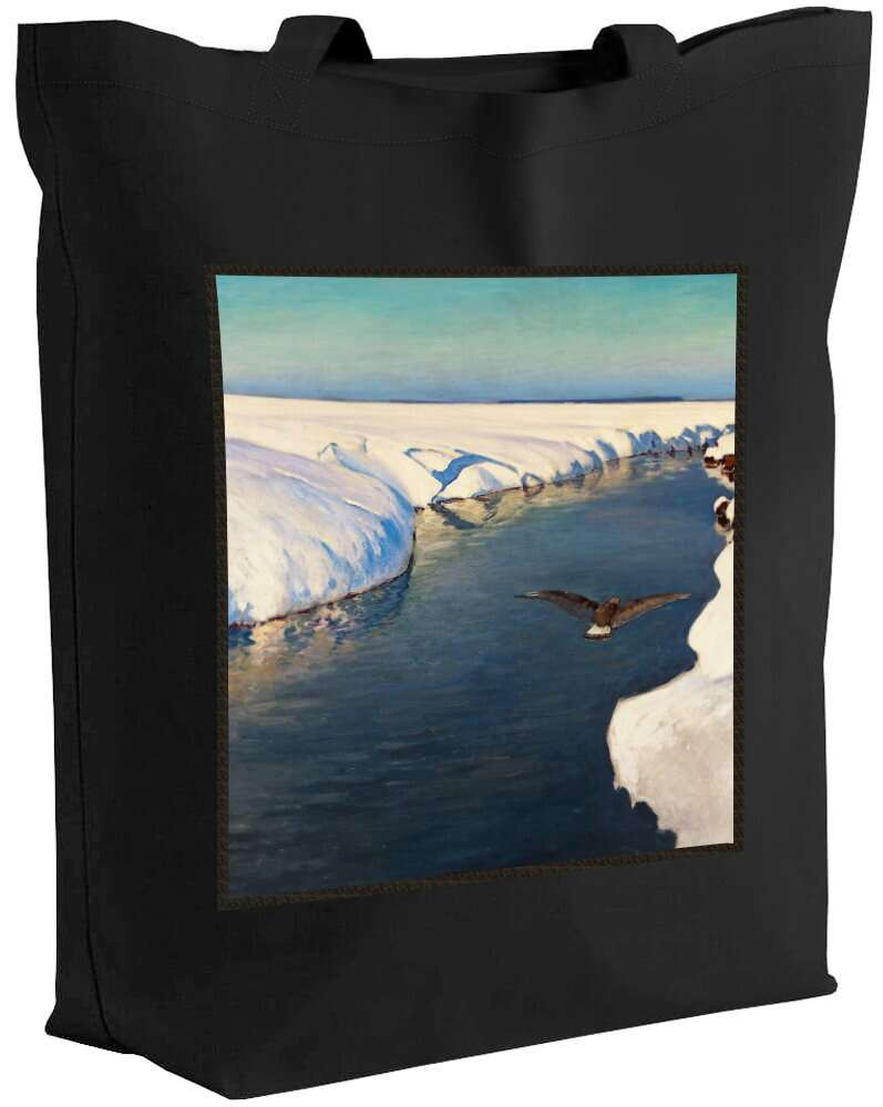 Torba z naszywką Pejzaż zimowy z rzeką i ptakiem Julian Fałat