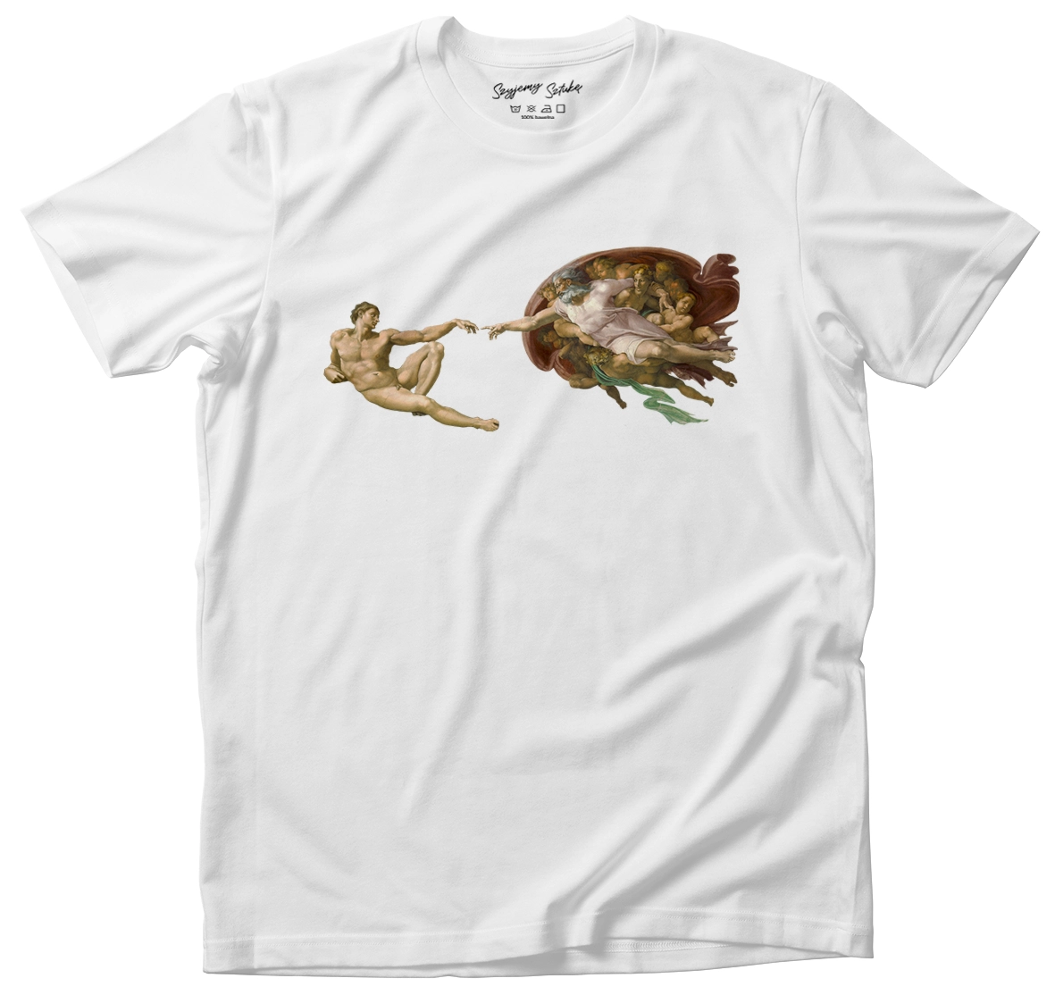 👕 Przedstawiamy koszulkę z nadrukiem Stworzenie Adama Michał Anioł🎨