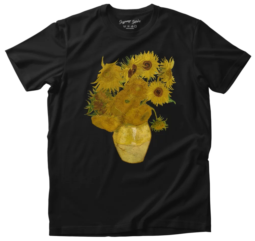 👕 Przedstawiamy koszulkę z nadrukiem Martwa natura: wazon z piętnastoma słonecznikami Vincent Van Gogh🎨