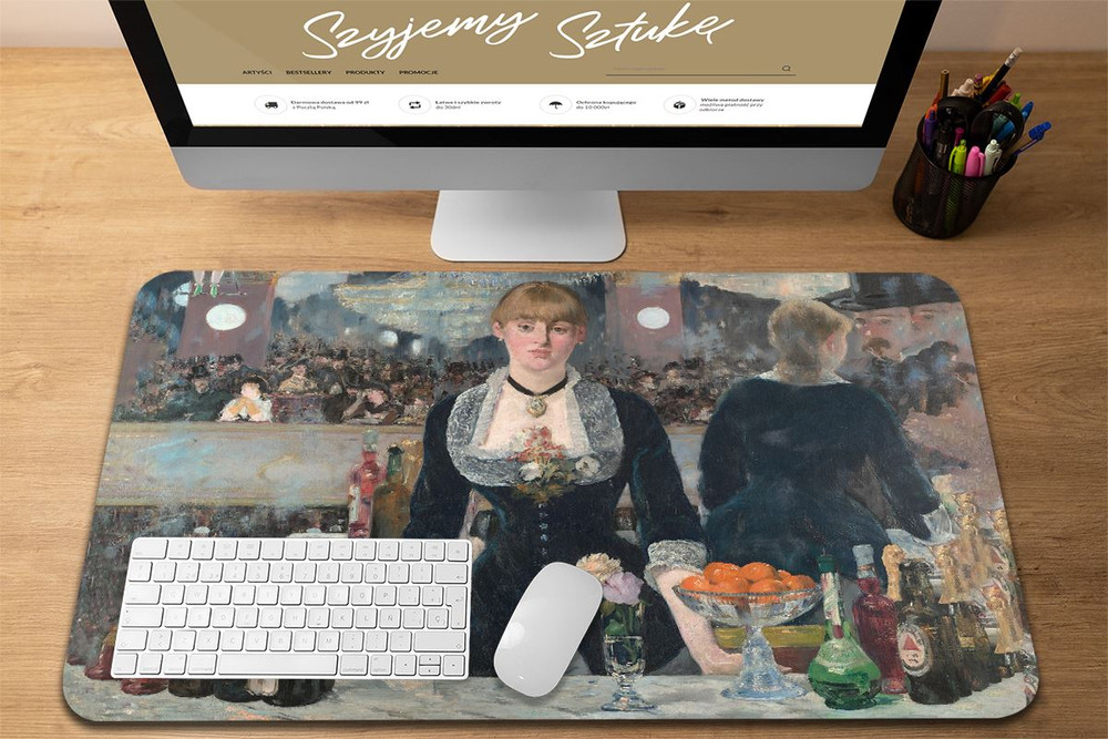 Podkładka pod mysz z nadrukiem na biurko. Rozmiar podkładki to 60 x 40 cm.