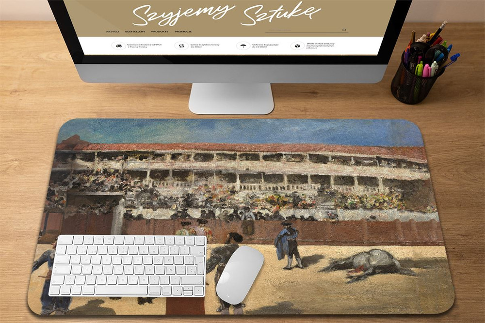 Podkładka pod mysz z nadrukiem na biurko. Rozmiar podkładki to 60 x 40 cm.